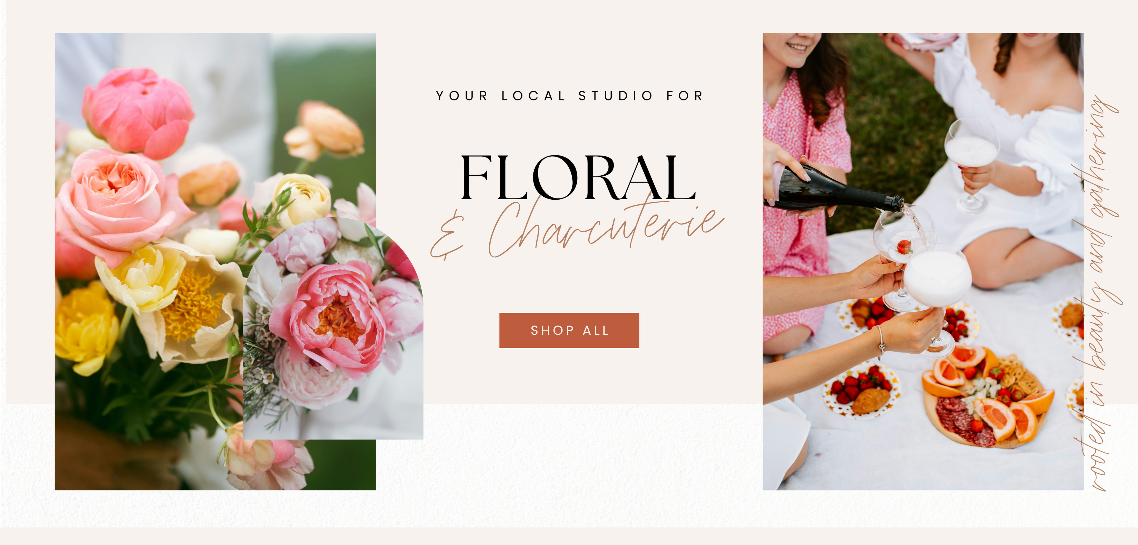 Hands-on floral and charcuterie workshops hosted in our studio.